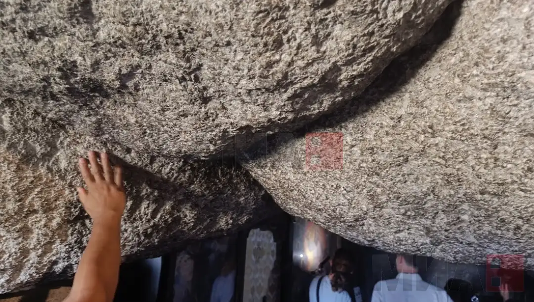 Додека јеромонахот Исидорос за МИА ја објаснува историјата, во светата пештера пристигнува помала група туристи.