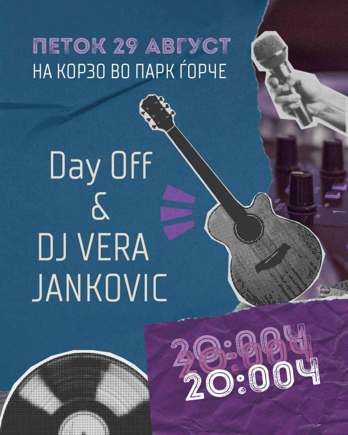 По неа, од 21.30 часот еден од најдобрите македонски клубски бендови „Деј Оф“ (Day Off) по одличниот настап на отворањето на културното лето, ќе го „репризира“ својот рок ен рол перформанс со изведба на избор од најпознатите светски, но и македонски рок ен рол класици и евергрин балади.