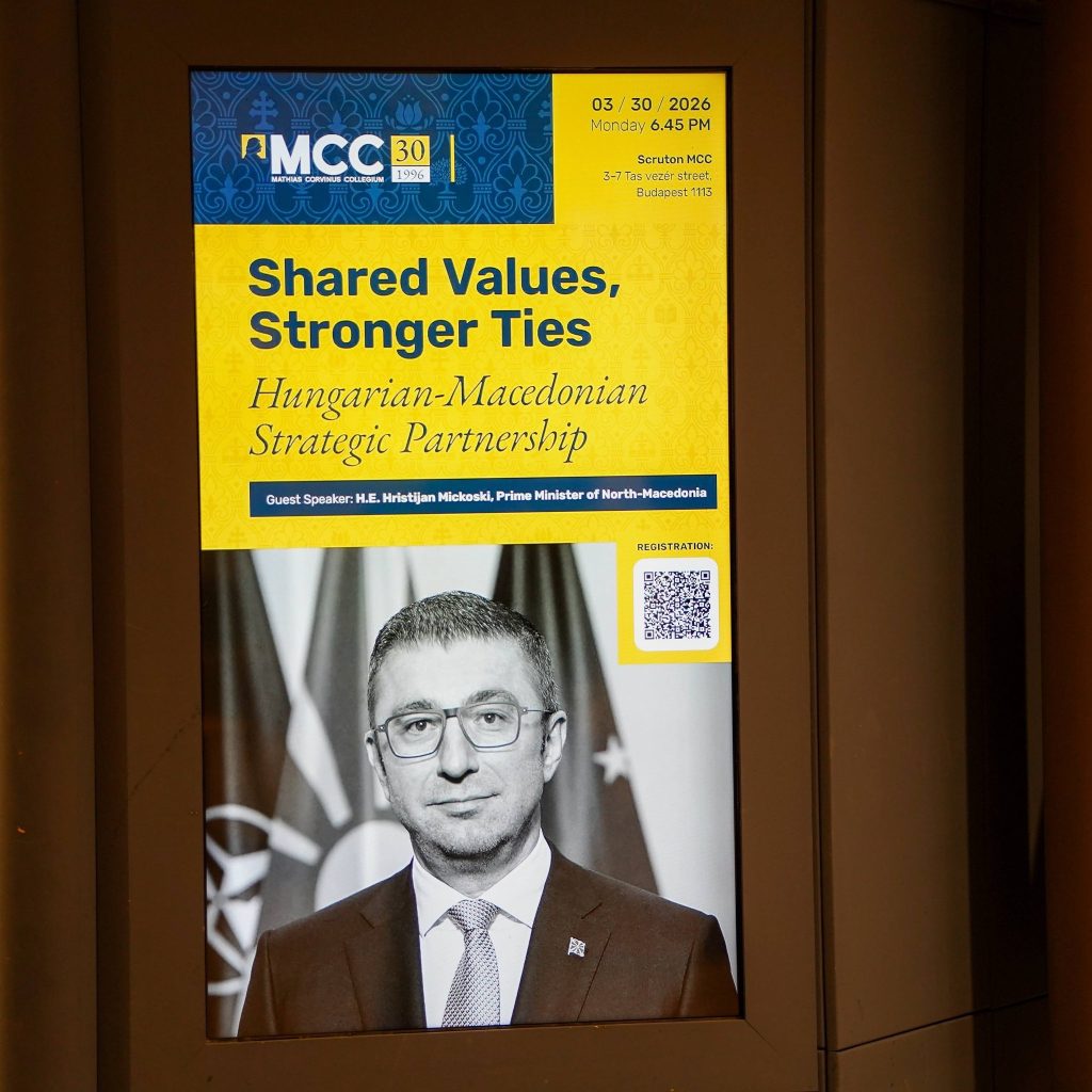 Денеска имав чест да се обратам и на настан во организација на „Mathias Corvinus Collegium“, каде што говорев за значењето на лидерството, визијата и храброста во време на сериозни европски и глобални предизвици. Истакнав дека силните држави се градат врз јасни политики, стабилни институции и доследна заштита на националните интереси, напиша на својот фејсбук профилм премиерот Мицкоски.