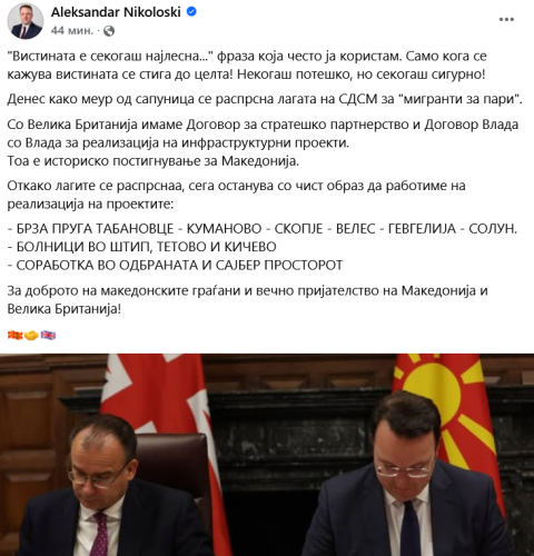 Со Велика Британија имаме Договор за стратешко партнерство и Договор Влада со Влада за реализација на инфраструктурни проекти.