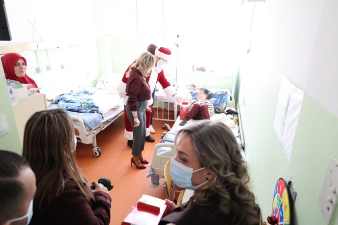 -За време на посетата, таа се сретна со нашите најмали пациенти и им подели подароци во пресрет на новогодишните празници, внесувајќи радост и насмевки во просториите на Клиниката, велат од Клиниката.