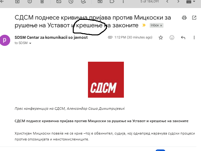 Партијата која 7 цели години го третираше Уставот на Република Македонија како тоалетна хартија, која истиот на сила го смени со уцени и закани кон пратеници, политичка направија која скоро една деценија се изживуваше со законите и безобразно ги менуваше со европски знаменца за марихуани и само-амнестии, денеска со сиот ум и со цел дигресија и дефокус од апсењата кои најверојатно ќе следуваат за зулумите и апашлук од минатото – поднесе некаква инфантилна кривична за кршење на Уставот. ни помалку ни повеќе, туку до премиерот Христијан Мицкоски.