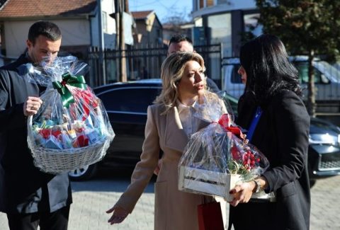 Сопругата на премиерот Христијан Мицкоски, Рози Мицкоска денеска на Клиниката за гинекологија го посети првороденото бебе.