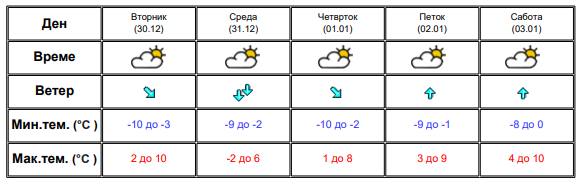 Утрото времето ќе биде ведро и многу студено, преку денот сончево со мала до умерена облачност. Ќе дува слаб до умерен ветер од северен правец.