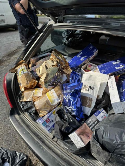 Денеска (20.07.2025) околу 8 часот во Тетово полициски службеници од Мобилната единица за компензаторни мерки при Одделот за гранични работи и миграции го лишија од слобода А.С.(45) од с.Горно Палчиште, о.Боговиње. При контрола на патничко возило “ауди” со тетовски регистерски таблички, кое А.С. го управувал, пронајдени се 49 кутии со филтри за цигари, 70 штеки со по 10 кутии цигари, 19 машинки за полнење на цигари и 98 килограми дробен тутун. По документирање на случајот, против А.С. ќе биде поднесена кривична пријава по член 278 б и 279 од КЗ.